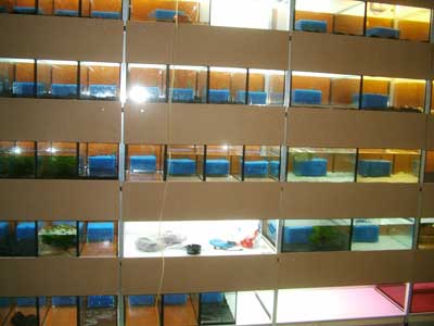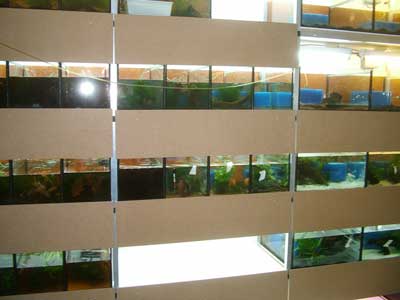 Da ich hauptsächlich kleinere Fischarten halte, sind die Becken nur 30 cm